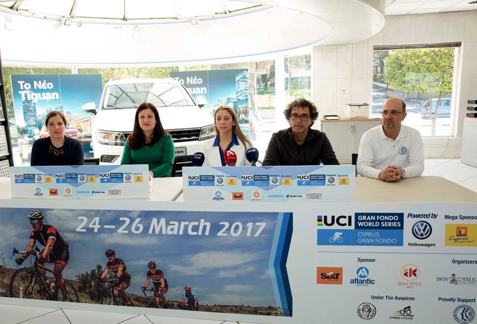 Λεπτομέρειες για τον σπουδαιότερο αγώνα Road Cycling που έγινε ποτέ στην Κύπρο δόθηκαν το πρωί της Τετάρτης (15/2) σε συνέντευξη Τύπου. Παράλληλα οι διοργανωτές του Cyprus Gran Fondo παρουσίασαν την επέκταση της συνεργασίας με την UNICARS βάσει της οποίας ο αγώνας θα ονομάζεται Cyprus Gran Fondo powered by Volkswagen. Η συνέντευξη Τύπου δόθηκε στον εκθεσιακό χώρο της Volkswagen, στη Λευκωσία.